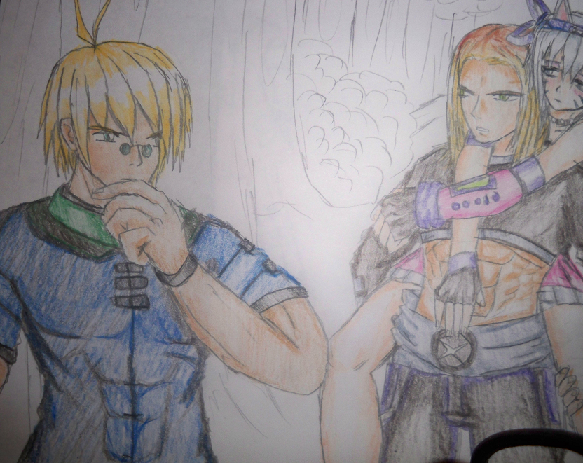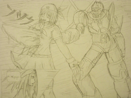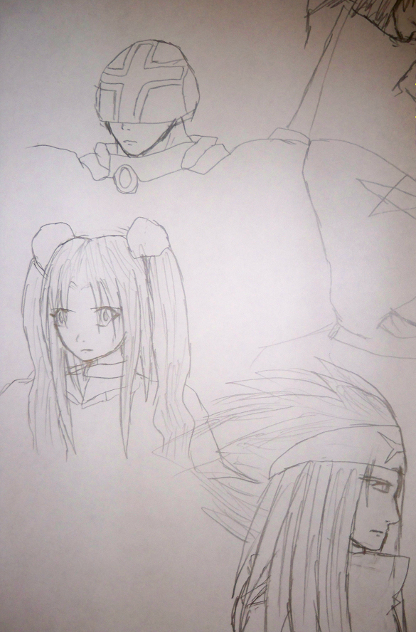 Just slipping a comment in here: I LOVE your weapons designs. You draw weapons so well, and I'd love to see more of them. It's something I always admire because it's an area in which I lack myself. I can really tell that you've been inspired by Phantasy Star, by the way, in a very good way. Two areas I could suggest improvement on are pencil colouring and drawing hands, but one just takes a bit of practice and the other's something most artists have problems with, so no worries! As far as pencil colouring tutorials go, I'm afraid for the most part you're on your own, but I did find this one on deviantART that looks okay. Many don't really mention crosshatching strokes and only going two ways with your lines in colouring, which really helps. You could also try and get your hands on some watercolour pencils and use a damp brush to smooth out your colours, and avoid the grainy look that pencils often give. Hope this helps, and keep up the great work!